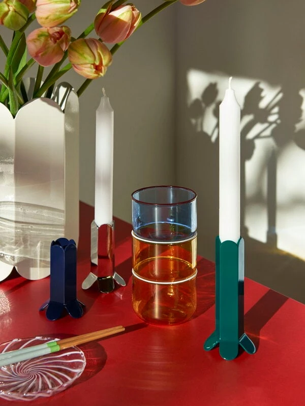 Designed by Muller Van Severen, the Arcs collection is based on simple oval shapes: when joined together, the pieces create captivating silhouettes where soft and straight lines meet. The Arcs series consists of various sizes of candleholders and vases in a range of finishes. You can create a vibrant yet coherent whole by mixing different colours together.