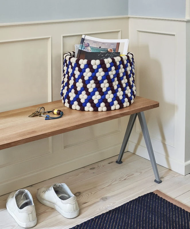 HAY’s Bead storage basket is handcrafted in Nepal. It consists of hundreds of hand-rolled felt spheres whose different shades form a fun diamond pattern on the surface of the basket. Due to the felt balls being made by hand, the shape and size of both the spheres and the basket may vary – please note that the appearance of the basket may be slightly different than pictured.