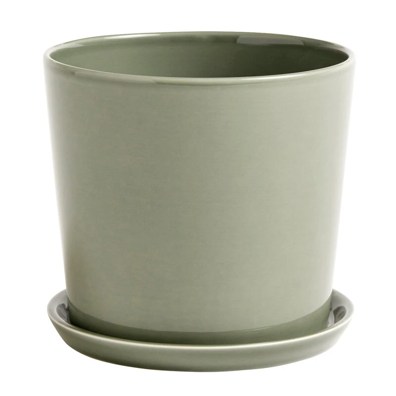 HAY Botanical Family Pot And Saucer, L, Dusty Green