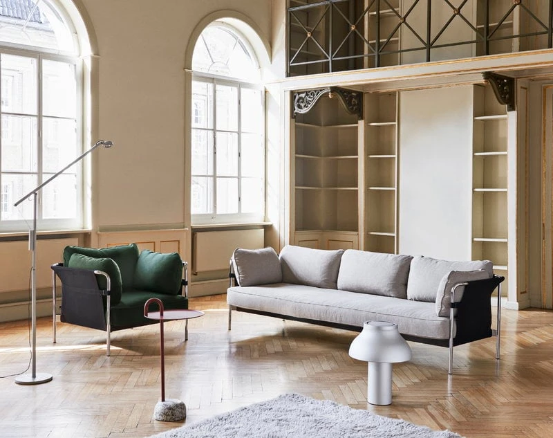 HAY’s Can collection was born when Ronan and Erwan Bouroullec set their mind to reinvigorate the concept of the sofa. They wanted to create a piece of furniture that is practical, elegant and comfortable but also relaxed and simple – a sofa for everyone. The Can sofas and armchairs come flat-packed and are assembled at home, which makes transportation and handling easier. The name Can reassures anyone having doubts about assembling the furniture. Just attach the slender metal legs to the frame, set the canvas in its place and finish off by adding the inviting, plush cushions.