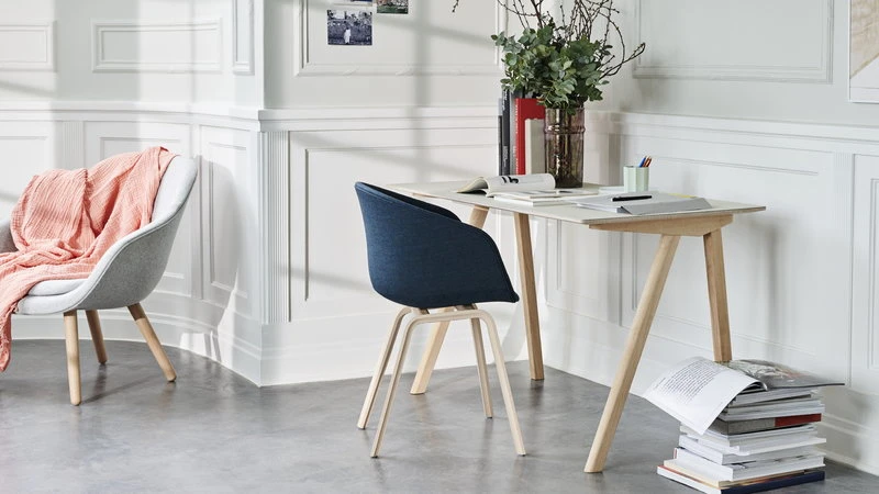 HAY invited the Bouroullec brothers to design the furniture for the new buildings of the University of Copenhagen (KUA). Due to the symmetrical frames and sleek legs, Copenhagen chairs and tables both stack vertically, allowing an almost infinite stacking. The Bouroullec brothers wanted to create furniture with greater originality and a more domestic expression than traditional educational furniture. The Copenhague collection fits all kinds of public and private use.