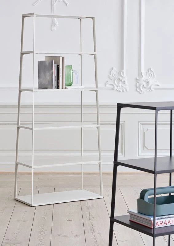 Eiffel shelf, designed by Line Depping and Jakob Jørgensen for HAY, is a member of a multifunctional furniture collection based on a simple layering principle. Eiffel shelving units and tables combine aluminium leg modules with powder-coated MDF that has been cut into different geometrical shapes. The lightweight and distinctive members of the Eiffel collection bring a touch of Danish functionalism and minimalism to various private and public contexts, and the pieces also combine perfectly together.