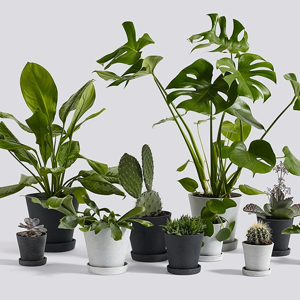 The pots and saucers of HAY’s Flowerpot collection provide your houseplants and flowers a modern, minimalist home. The monochrome flowerpots and saucers are made of polystone that combines the porous feel of concrete with plastic-like lightness. Give your plants a uniform setting or combine different tones of flowerpots and saucers freely together.