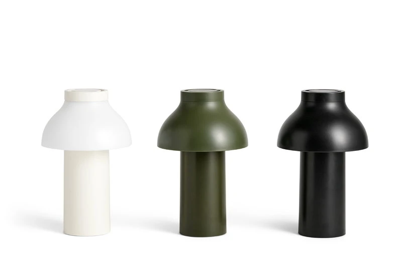 PC Portable lamp, designed by Pierre Charpin for HAY, is a chargeable table lamp for both indoor and outdoor use. PC Portable will find its place in any room of the house, and the cordless structure makes it ideal for places without electricity, such as cottages, attics, terraces and gardens. Made of matt-coated polycarbonate, the lamp has an integrated touch step dimmer which allows you to alter between bright downlight and soft ambient light. The battery lasts about 8 hours with one charge.