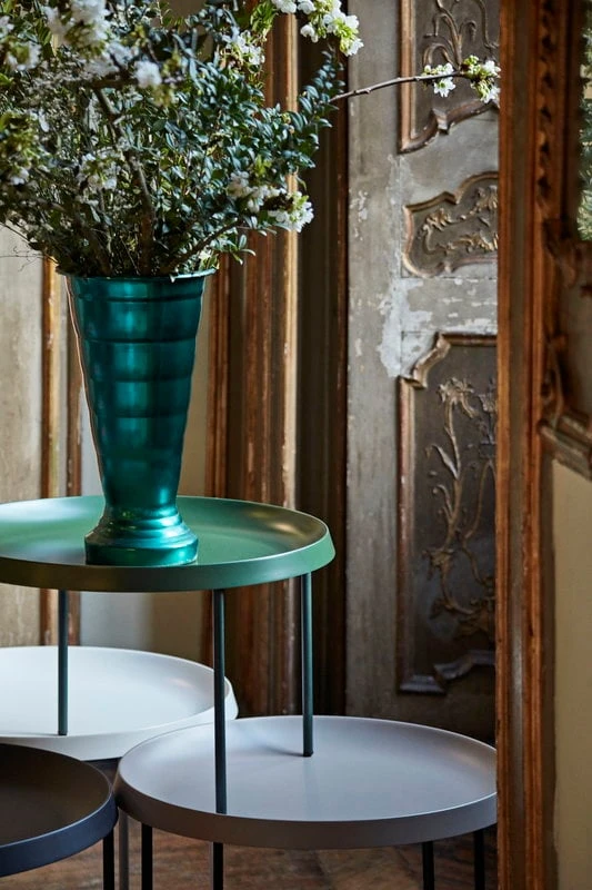 HAY’s Tulou coffee table is characterized by slim metal legs and a removable tabletop with rising edges. Designed by the Danish design agency GamFratesi, Tulou was inspired by the functional aesthetics of traditional tray tables. Besides a modern coffee table, Tulou can also be used as a large serving tray – the tabletop is easy to remove from the frame, and the wide edge makes it easy to hold and carry the tray.