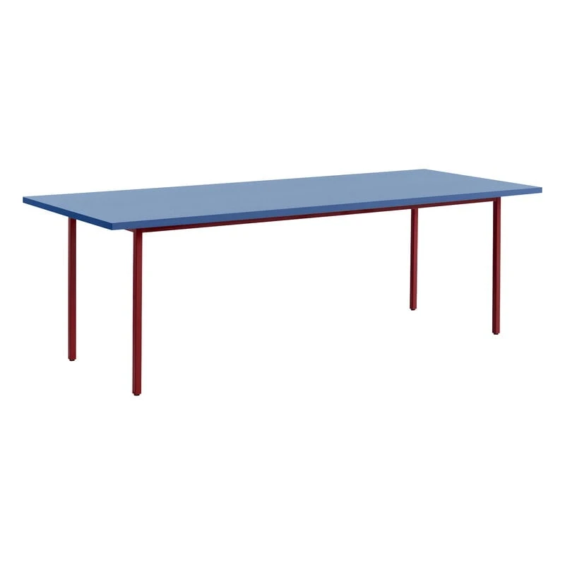 The Two-Colour table by HAY is a jovial mix of bursting colours and strict minimalism. Created by Belgian design duo Muller Van Severen, the Two-Colour tables feature a unique marriage between two very different components: a sturdy, yet airy steel base and a tabletop crafted from a new SFC certified MDF material, Valchromat. The unique, textured look of the Valchromat is slightly visible through the sheer lacquer, giving the geometric table an organic touch.